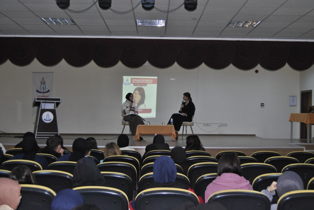 Bireyin hayatı boyunca verdiği en önemli kararlardan birisi şüphesiz meslek seçimidir. İlgi ve yeteneklerine uygun, değerleriyle bağdaşan ve kişilik özellikleri ile uyum sağlayan bir meslek tercihi yapmak zor olmasıyla beraber bireyin geleceğini en çok etkileyecek unsurlardandır. Günümüzde özellikle deneyimleyerek ve yaşayarak meslekleri tanımak oldukça zordur. Bu anlamda mesleki rehberlik faaliyetleri ön plana çıkmaktadır. Okulumuz farklı meslek gruplarından uzmanlar ile seminer düzenleyerek, öğrencilerle meslekleri bir araya getirmiştir. 4 gün süren mesleki rehberlik ve kariyer günlerinde açılış konuşmasını Sn. İl Milli Eğitim Müdürümüz Muammer Öztürk gerçekleştirmiştir. Bilgi akışının yoğun olduğu bu programda sırasıyla bilgisayar mühendisi, yazılım mühendisi, avukat, psikolog, mimar, islami ilimler ve insan ve toplum bilimleri alanından akademisyenler, veteriner hekim, ziraat mühendisi, fabrika yöneticisi, doktor, polis, iktisat bölümünden akademisyenler sunumlarını gerçekleştirmişlerdir. Tüm katılımcılara desteklerinden dolayı teşekkür ed